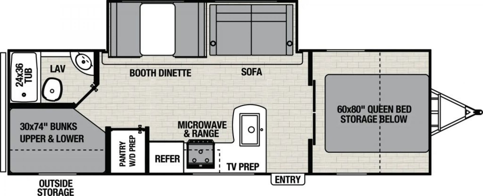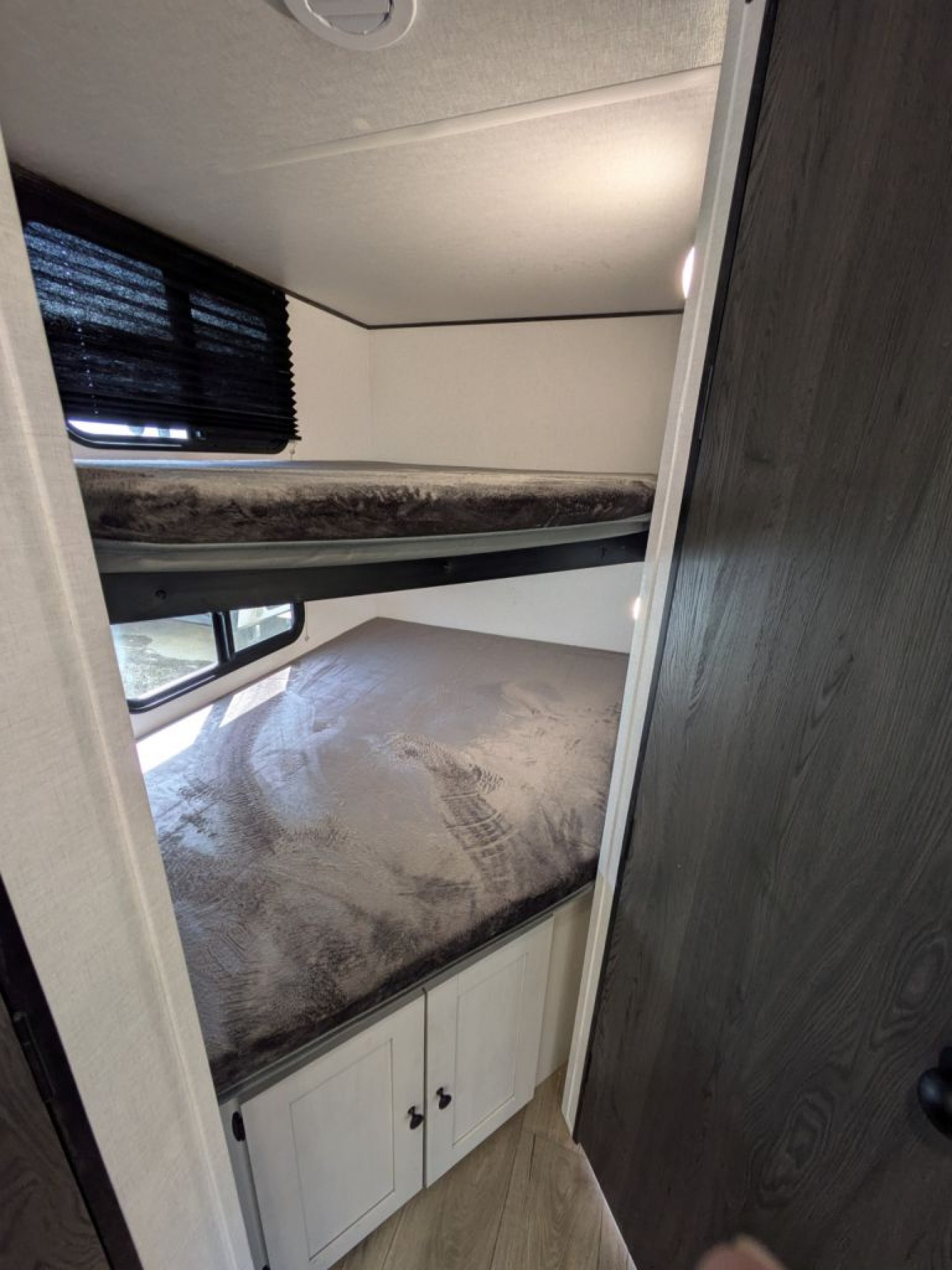 Looking for a lightweight, family-friendly RV packed with premium features? The Northern Spirit 26B is a true standout in the world of travel trailers. At just under 31 feet and only 5,641 lbs UVW, this camper is half-ton towable and built for adventure and sleeps 8!