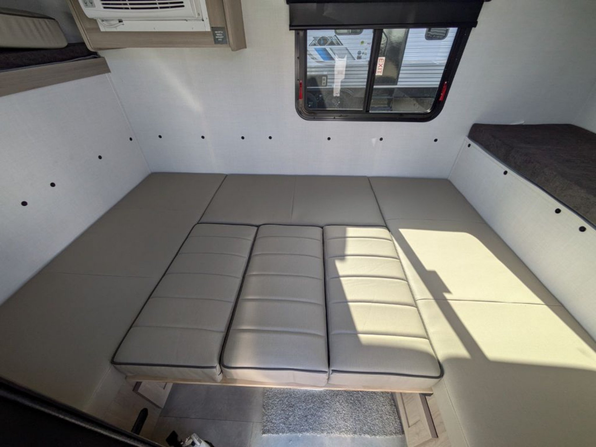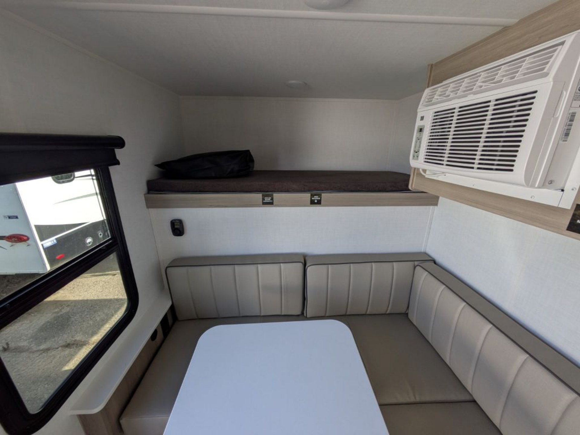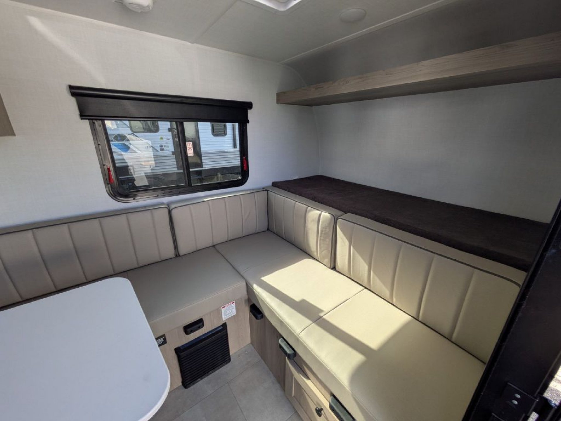 Step inside and you’ll find a cleverly designed interior that makes the most of every square inch. The 11LE features a cozy seating area that easily converts into a comfortable sleeping space, giving you versatility whether you’re relaxing, dining or resting. Large windows throughout the trailer allow natural light to fill the interior and create an open, airy feel that enhances your connection with the outdoors. With thoughtful storage solutions, everything has its place, making life on the road more enjoyable and organized.