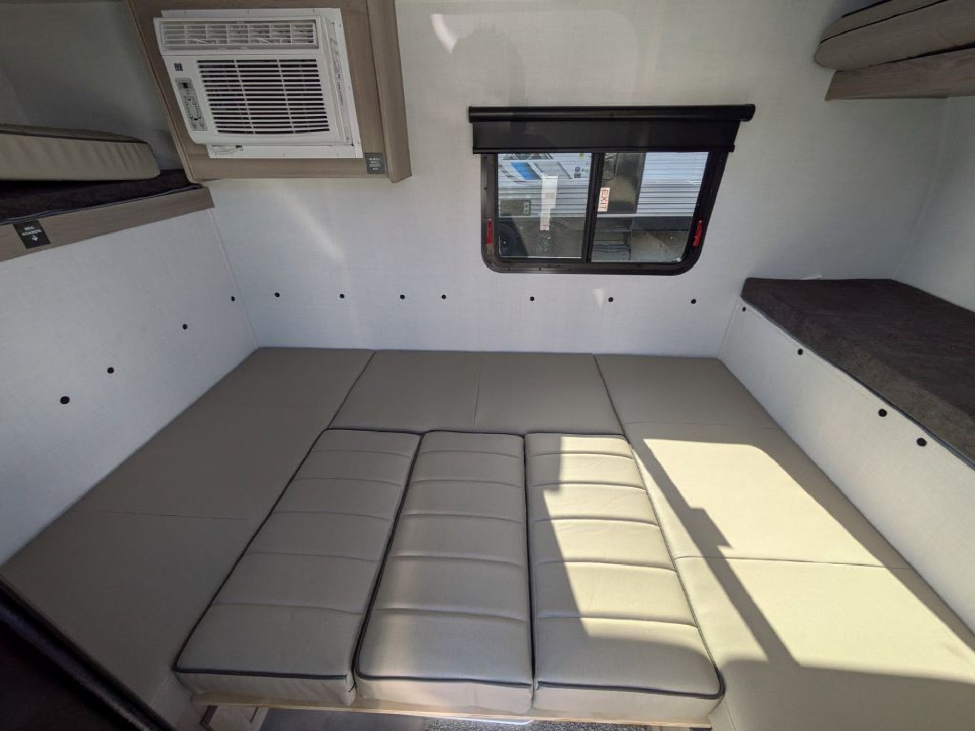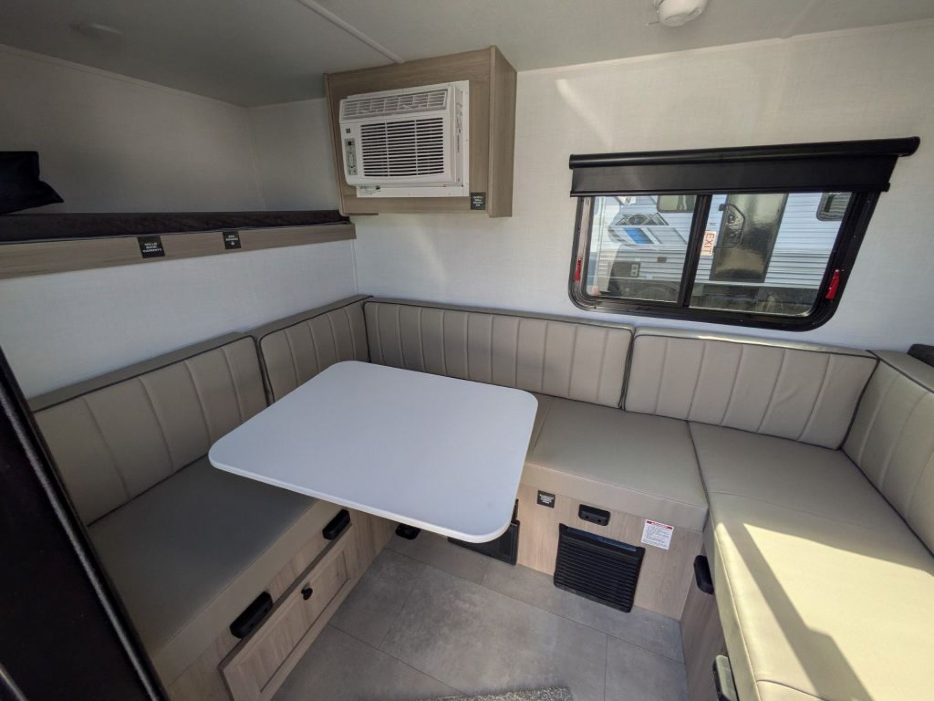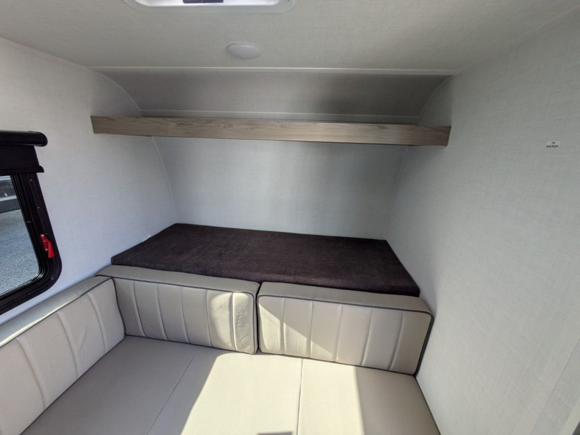 Step inside and you’ll find a cleverly designed interior that makes the most of every square inch. The 11LE features a cozy seating area that easily converts into a comfortable sleeping space, giving you versatility whether you’re relaxing, dining or resting. Large windows throughout the trailer allow natural light to fill the interior and create an open, airy feel that enhances your connection with the outdoors. With thoughtful storage solutions, everything has its place, making life on the road more enjoyable and organized.