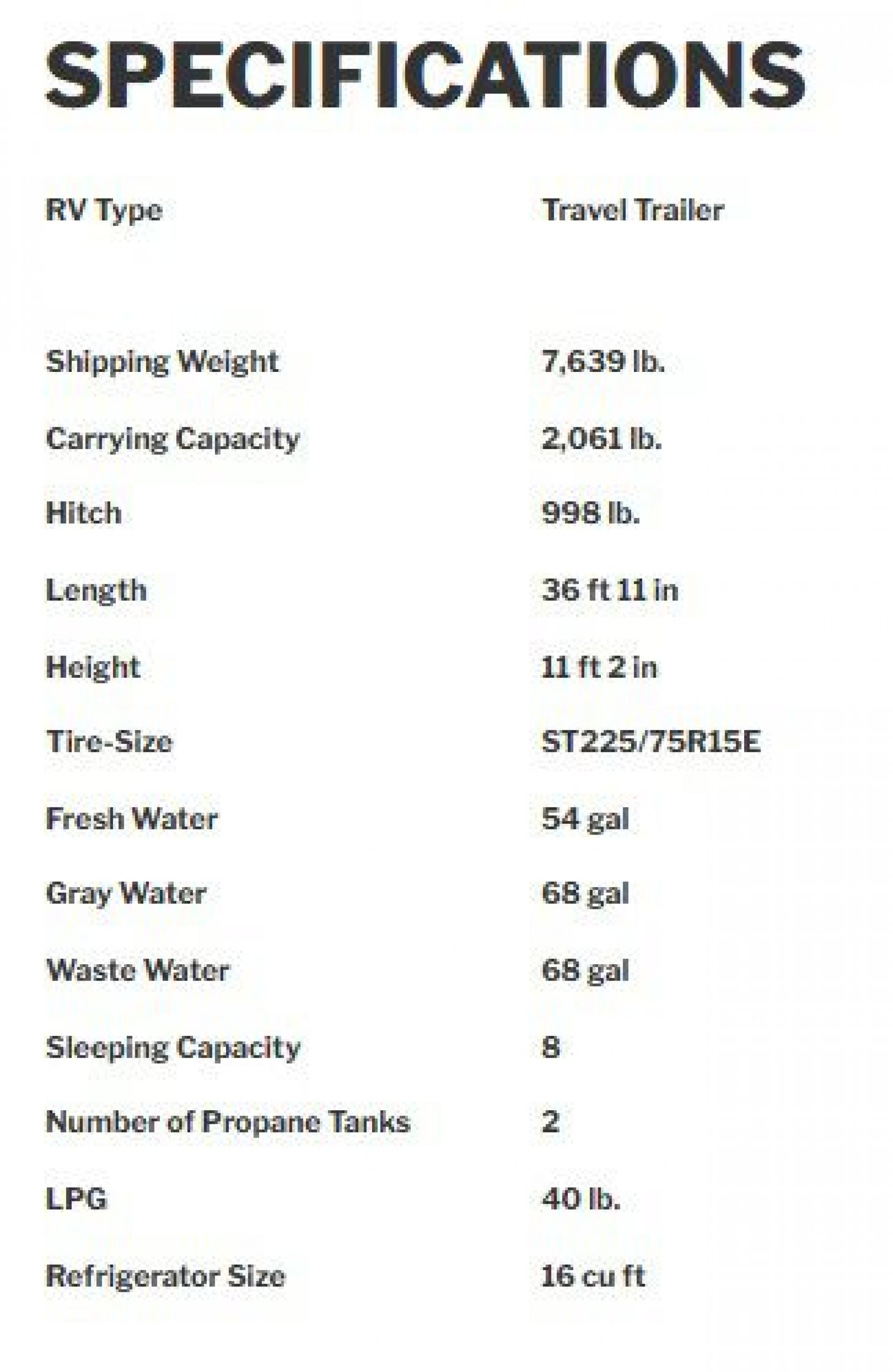 | Dry Weight | 7639 lbs. | Grey Water | 68 gals. |