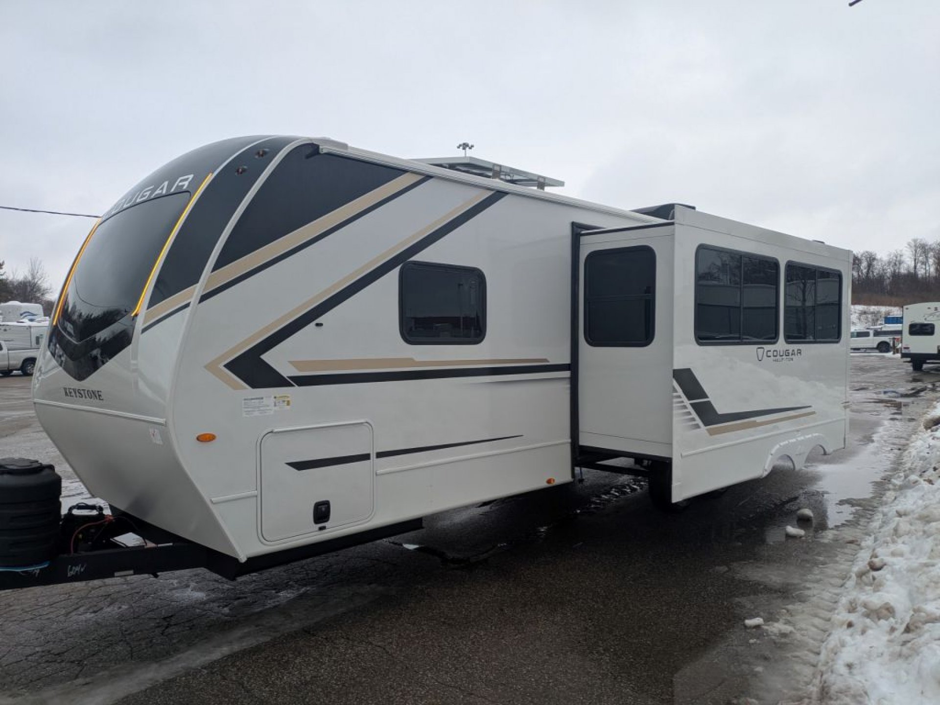 Keystone builds the Cougar Half-Ton series with quality construction features that inspire confidence. Its HyperCore™ composite wall construction with Vixen Fibrogloss™ high-gloss finish and AlphaPLY™ roof membrane provide durability and weather protection, while the Climate Guard protection package helps make seasonal camping more comfortable. Additional exterior conveniences like pass-through storage, an electric awning with LED lighting and rugged Goodyear Endurance tires ensure you’re ready for wherever the road takes you.