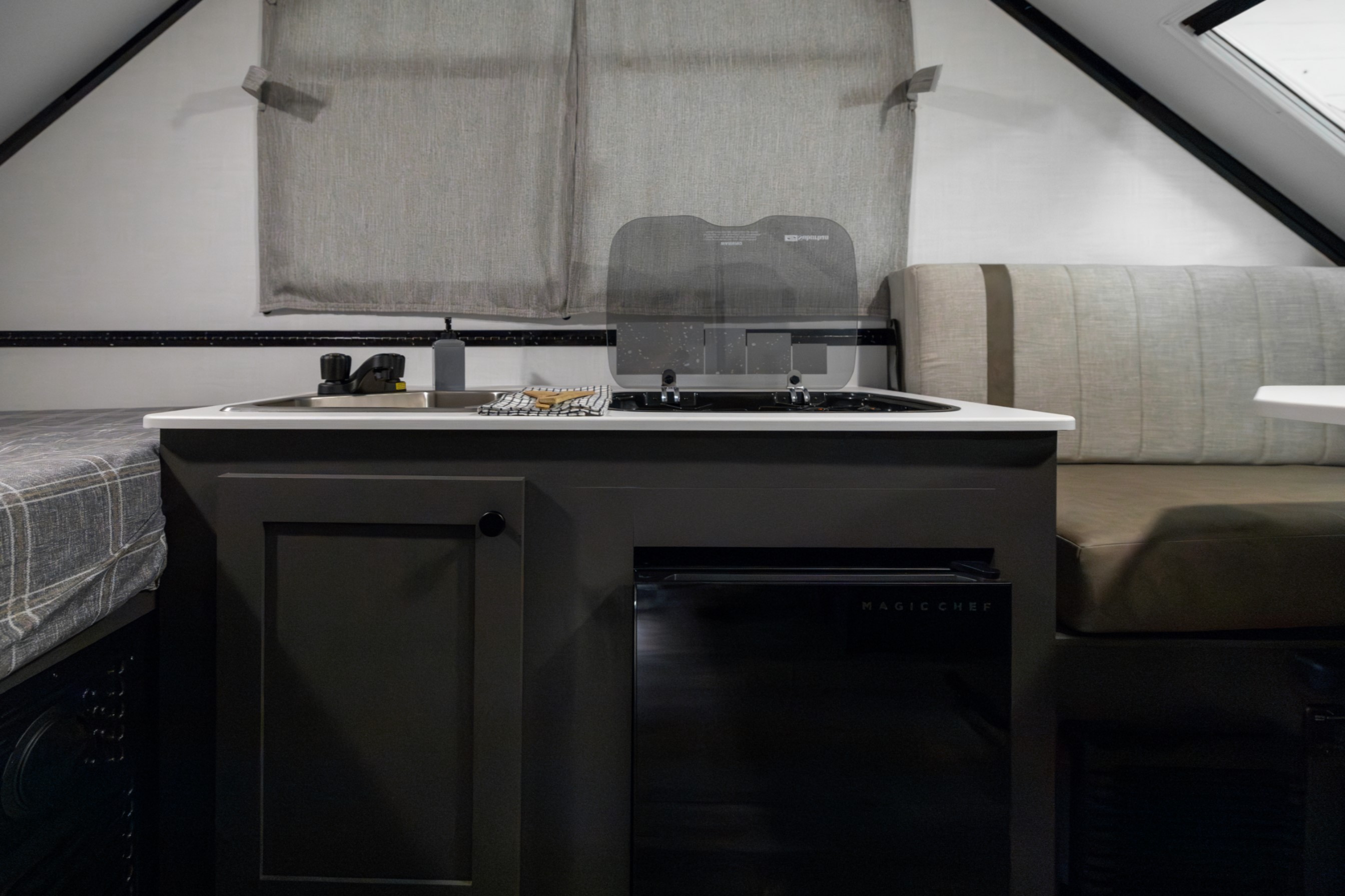 The Rockwood Hardside Pop-Up Camper is ideal for campers who love versatility. It’s light enough to be towed by many small SUVs or crossovers, but durable enough for frequent travel and long weekends in rugged environments. The combination of a furnace and air conditioner keeps you comfortable in nearly any season, while options like the hot water package with outside spray port and the water filtration system make it easy to stay refreshed and clean on extended trips.