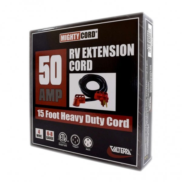Valterras Mighty Cord Extension Cords feature a durable rubber jacket and are designed for outdoor use. Each extension cord includes a finger grip male end for ease of use. 125/250V, 4 wire, 6-8 gauge